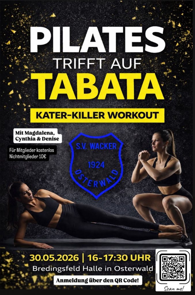 Erlebe die perfekte Mischung aus Kraft und Cardio! Der S.V. Wacker Osterwald präsentiert das „Kater-Killer Workout“ – ein Special-Event, das Pilates-Präzision mit Tabata-Intensität verbindet. Unter der Leitung von Magdalena, Cynthia & Denise stärken wir die Tiefenmuskulatur und kurbeln die Fettverbrennung an. Ideal für alle, die ein effektives und forderndes Training suchen. Die Details: Anmeldung: Scanne […]