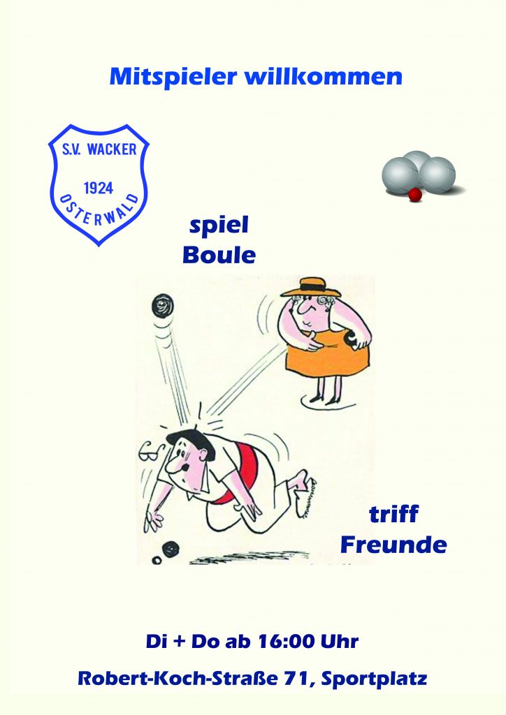 Boule oder Pétanque ist ein geselliges Freizeitvergnügen und wird beim SV Wacker Osterwald seit über 20 Jahren auf eigenen Bahnen gespielt.